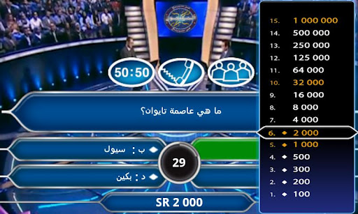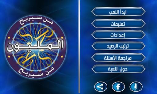 من سيربح المليون 2013 للاندرويد لعبة البرنامج التلفزيوني الشهير من سيربح المليون تقديم الإعلامي الكبير جورج قرداحي على تلفزيون الشرق الأوسط إم بي سي. https://lh5.ggpht.com/bzH9nAQ_BSvUS7...9h8aeQrk55neHR ميزات اللعبة : - طريقتين للعب : اللعب بطريقة نظامية واللعب بسرعة. - التدرج في صعوبة الأسئلة. - إظافة وسيلة مساعدة رابعة وهي تغيير السؤال بعد السؤال العاشر. - إستعمال الأصوات في وسيلة المساعدة الإتصال بصديق. - إستعمال الأصوات و الإرشادات في جميع مراحل اللعبة عنذ اللعب بطريقة نظامية. - إمكانية الإنسحاب و الإحتفاظ بالرصيد. - مشاهدة الشيك يحمل إسمك و المبلغ المحصل عليه. - إمكانية تسجيل الأرصدة و الرجوع إليها و مشاهدة الشيكات في أي وقت. - التحكم في اللعبة بالأوامر الصوتية للتحكم بالصوت في اللعبة : يجب عليك أولا أن تتوفر عل إتصال بالنت ثم إختيار اللغة العربية كلغة للبحث الصوتي كما يلي : اضغط على زر القائمة اضغط على الضبط اختر اللغة و الإدخال اختر البحث الصوتي اضغط على خيار اللغة ثم اختر العربية للتحكم في اللعبة بصوتك إستعمل الجمل التالية بعد أن تضغط على زر التحكم الصوتي : لحذف إجابتين قل : حذف إجابتين أو قل : نحذف إجابتين للإتصال بصديق قل : إتصال بصديق أو قل : أتصل بصديق لأخد رأي الجمهور قل : مساعدة الجمهور أو قل : أسأل الجمهور لتغيير السؤال قل : تغيير السؤال أو قل : تبديل السؤال لإختيار الإجابة ألف قل : الإجابة الأولى أو قل : إجابة ألف أو قم فقط بنطق إسم الحرف : ألف لإختيار الإجابة باء قل : الإجابة الثانية أو قل : إجابة باء أو قم فقط بنطق إسم الحرف : باء لإختيار الإجابة جيم قل : الإجابة الثالثة أو قل : إجابة جيم أو قم فقط بنطق إسم الحرف : جيم لإختيار الإجابة دال قل : الإجابة الرابعة أو قل : إجابة دال أو قم فقط بنطق إسم الحرف : دال للإنسحاب من اللعبة قل : إنسحاب أو قل : أنسحب يمكنك تفعيل خاصية الإستماع الأوتوماتيكي لإجابتك بصوتك من الإعدادات : إذهب إلى الإعدادات ثم قم بالضغط على التحكم الصوتي و أدخل عدد الثواني التي بعدها تستمع اللعبة إلى إجابتك. https://lh4.ggpht.com/b3TY5uZrFmXwpt...CQmzJ9PVrncYRQ https://lh3.ggpht.com/AdfnAnzYlVg9sD...-N2SXonP9iEDfw https://lh3.ggpht.com/pLFNuIJ-pPHdZY...S0jUs88vjFlTDw اضغط هنا لتحميل التطبيق او من هنا أكثر... |