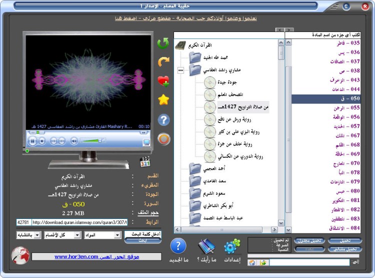 يمكنك تشغيل سور القرآن مباشرة من البرنامج