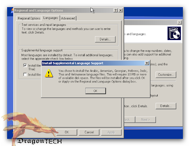 ماذا نجتاج؟ اولا : جهاز عشان تثبت عليه النظام ... ( بالله تنكت D: ) ثانيا : قرص النظام Windows XP مع مفتاح التشغيل . ثالثا : الصبر لأن العملية تستغرق حوالي ساعة ونص. نبدأ باسم الله... أولا ادخل القرص في محرك الاقراص ثم أعد التشغيل. اضغط على الي مفتاح على لوحة الفاتيح لعمل الاقلاع من القرص انتظربينما يحمل بيانات النظام ... الى ان تظهر الشاشة التالية : اضغط على Enter لتثبيت النظام او R لإصلاح النظام عن طريق الـ DOS أو F3 للخروج ... بعد ان تضغط على Enter تضهر لك شاشة اتفاقية رخصة المستخدم المهم ما في احد يحب يقرأ هاي الاشياء اضغط على F8 للقبول أو على ESC للخروج ( P.D. للإنتقال الى السفل - P.U. للاتقال الى الاعلى ) هنا اهم شيء فاذا كان عندك اقسام انتبه حيل -- عادة ما يكون النظام مثبت على القسم C ولكن في بعض الاحيان يكون على غير ذلك لذلك لا نريد ان نحذف ملفات شخص آخر قد يكون وضعها في قسم آخر للحفاظ عليها ... لذلك حوال ان تبحث عنن كلمة System على يمين القسم الذي تريد ان تثبت عليه النظام . بعدها اضغط على Enter لتثبيت النظام على القسم المطلوب او C لأنشاء قسم جديد أو احيانا تريد مسح الهارد بالكامل وانشاء تقسيمات جديدة ( قد تكون 2 وتريدها 3 او أربعة ... ) فستجد D يساعدك على حذف قسم ( حذف القسم يمحي كل الملفات التي يحويها ) فكرة الاقسام مثل البيت فيه غرف فتقدر تهد الحيكان وتعيد بنائها من اجل غرف اكثر .. بعد ان تختار القسم الذي تريده ستدخل الى عملية نوع الفورمات اما NTFS أو FAT يفضل ان تستعمل NTFS واختر اول واحد اللي مكتوب عليه وبعد ما يفرمت راح يبدأ بنسخ ملفات النظام واللي تساعدك على بدء تثبيته اتركه هو يعيد التشغيل لوحده او اذا كنت مستعجل اضغط اي شيء على لوحة المفاتيح . ستجد بعد اعادة التشغيل هذه الشاشة هذا يعني ان الفورمات تم بنجاح وتم نزيل اساسيات النظام وسيتابع الان ... يبدأ بنسخ ملفات النظام اتركه ربع ساعة وارجع ستجده متوقف عند الشاشة التالية ... في هذه الشاشة يطلب منك اختياراعدادت المنطقة واللغة ... انقر على زر Customize لتغيير الاعدادت. في قائمة الخيارات الاولى ضع الاعدادت المفضلة وفي القائمة الاخرى ضع المكان الذي تسكن فيه . ننتقل الى شريط Language منها تضيف اللغات المرغوب فيها لمنطقة الشرق الاوسط ضع على المربعين التاليين ... والتي ستسمح بالكتابة من اليمين لليسار ... اعملها مثل الصورة التي في الاسفل ثم انتقل الى الشريط الاخير وبدل English (U.S الى Arabic المنطقة التي ان تعيش فيها . انقر على apply او OK لبدء عملية تثبيت اللغات والخروج بالعودة الى القائمة ستجد زر Details انقر عليه اذا كنت تحب اضافة لغات كتابة غير العربية أو الانجليزية . بعد النقر على Next ستجد هذه الشاشة في المربع الاول اكتب اسمك في المربع الثاني اكتب اسم الشركة واذا ما كان في اسم شركة اتركه فاضي . في القائمة التالية نجد في المربع الاول اسم الكمبيوتر الذي سيظهر اذا كان الجهاز موصول بشبكة او اذا كان فيه بلوتوث . في هذه القائمة نعدل اعدادات الوقت والتاريخ . اذا ما كان جنبك ساعة اتركها تقدر تعدلها بعدين . بعد النقر على زر التالي يبدأ النظام في تثبيت اعدادات الشبكات ... دعها في الاولى الا اذا كنت خبير او تريد اعدادت خاصة فادخل على الثانية ... دعها مثل ما هي ... الا اذا كنت تفضل اعدادت خاصة . بعد الانتقال ستختفي النوافذ اترك الجهاز نصف ساعة وارجع له ستجد النافذة التالية ومفادها ان النظام سيغير اعدادات الشاشة للتوفق معه . انقر OK بعدها ستضهر لك رسالة مؤقتة مفادها انه اذا كنت تستطيع قراءة الكتابة انقر OK واذا لم تستطيع او لم تعجبد انقر Cancel > انتظر قليلا... ستنتقل الى الشاشة الثانية الذي هو شيء في اعدادت النظام وهو تخصيصه انقر التالي ... اختر اول واحدة والتي تسمح للنظام بتنزيل التحديثات او اذا كنت لاترغب بها فانقر على الثانية ... ثم Next انقر على كلمة Skip لتخطي اعدادات الاتصال بالانترنت. لأنها مملة اذا كانت لديك نسخة أصلية من نظام Windows XP فانقر على اول واحدة لتسجيل الرخصة واذا لأ الثانية ولكن لا تنقر على الاولى اذا كانت نسخت